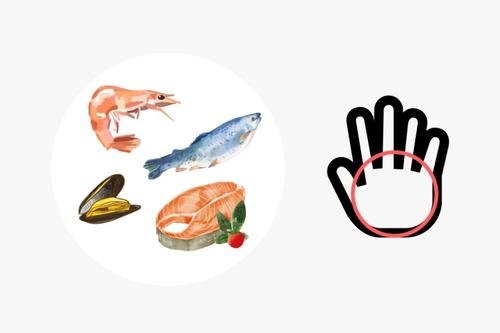 水產(chǎn)類食物,包含魚、蝦、貝類等等。